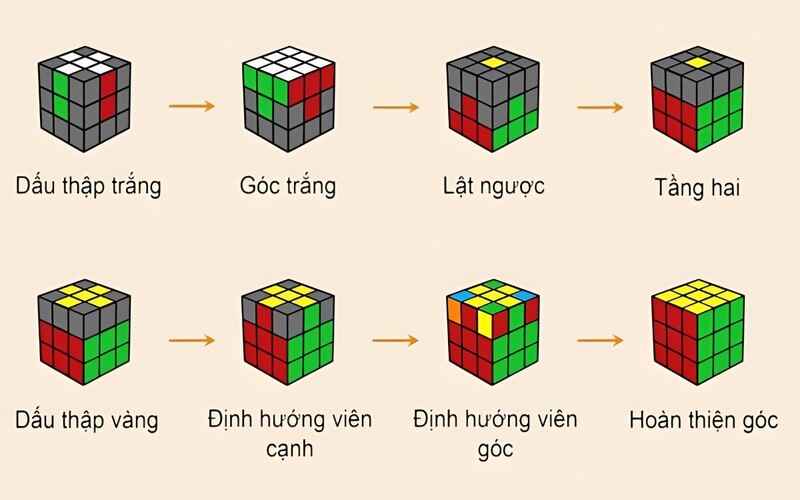 Thay vì cố gắng giải cả khối Rubik trong một lần, hãy chia nhỏ mục tiêu theo từng tầng. Cách làm này giúp bạn kiểm soát tốt hơn và tránh bị rối khi gặp tình huống khó.